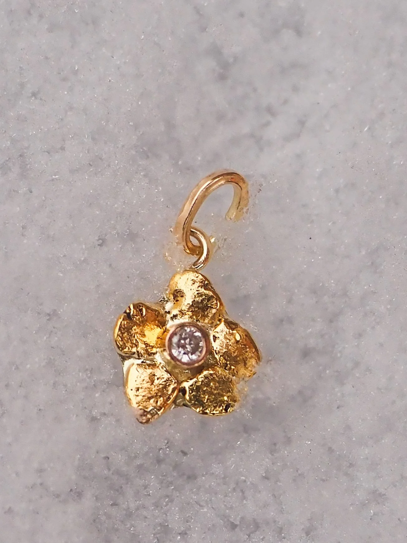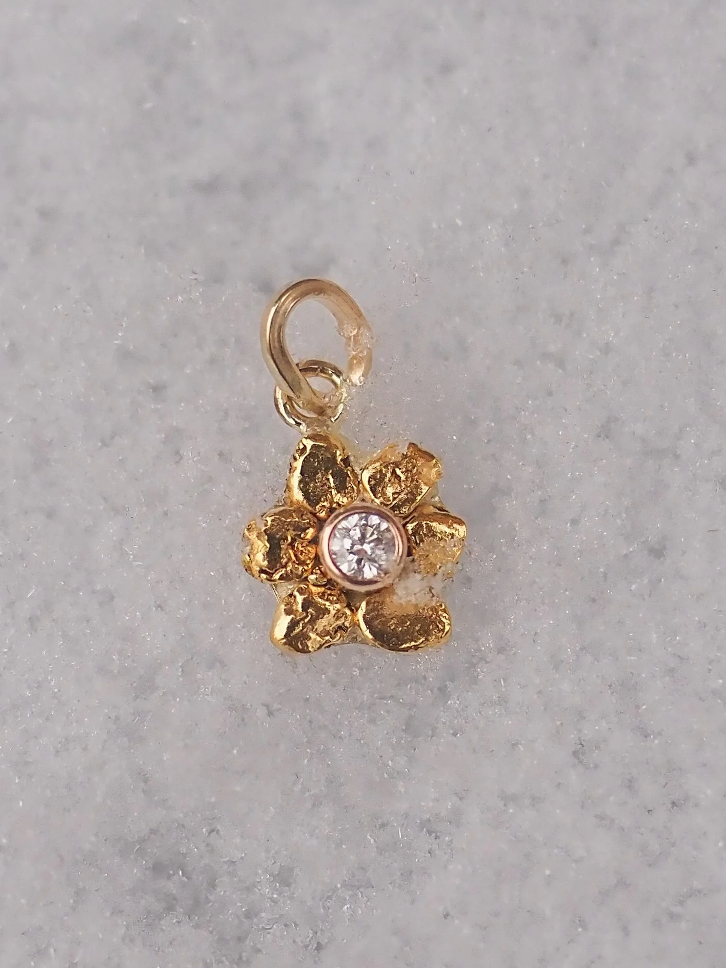 Diamond is the centerpiece of this golden wild flower crafted from remnants of an exploding star (natural Alaskan gold nuggets) connecting life on Earth to life in the cosmos. The natural nuggets aren’t only older than our Earth, but older than our entire solar system.