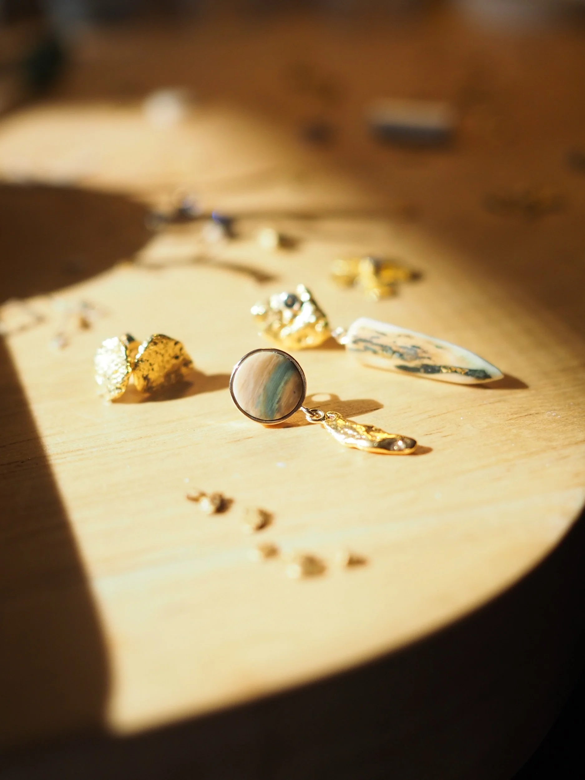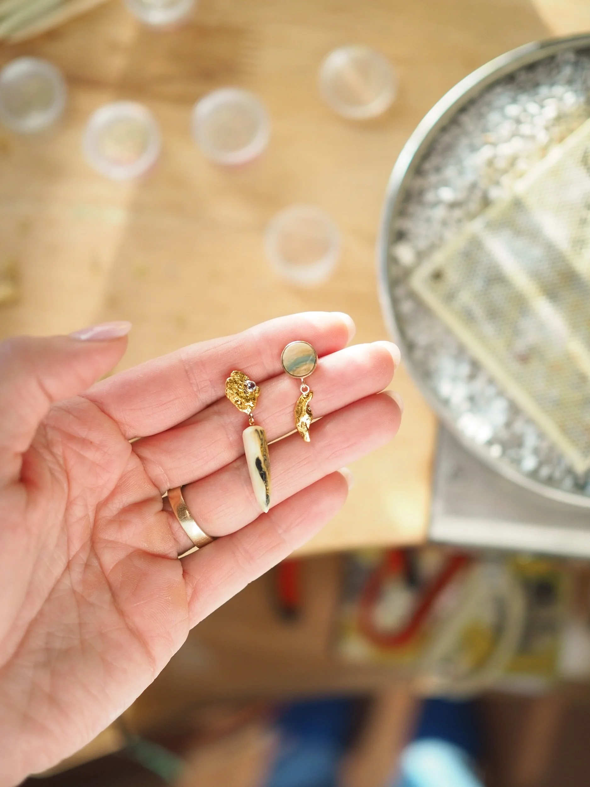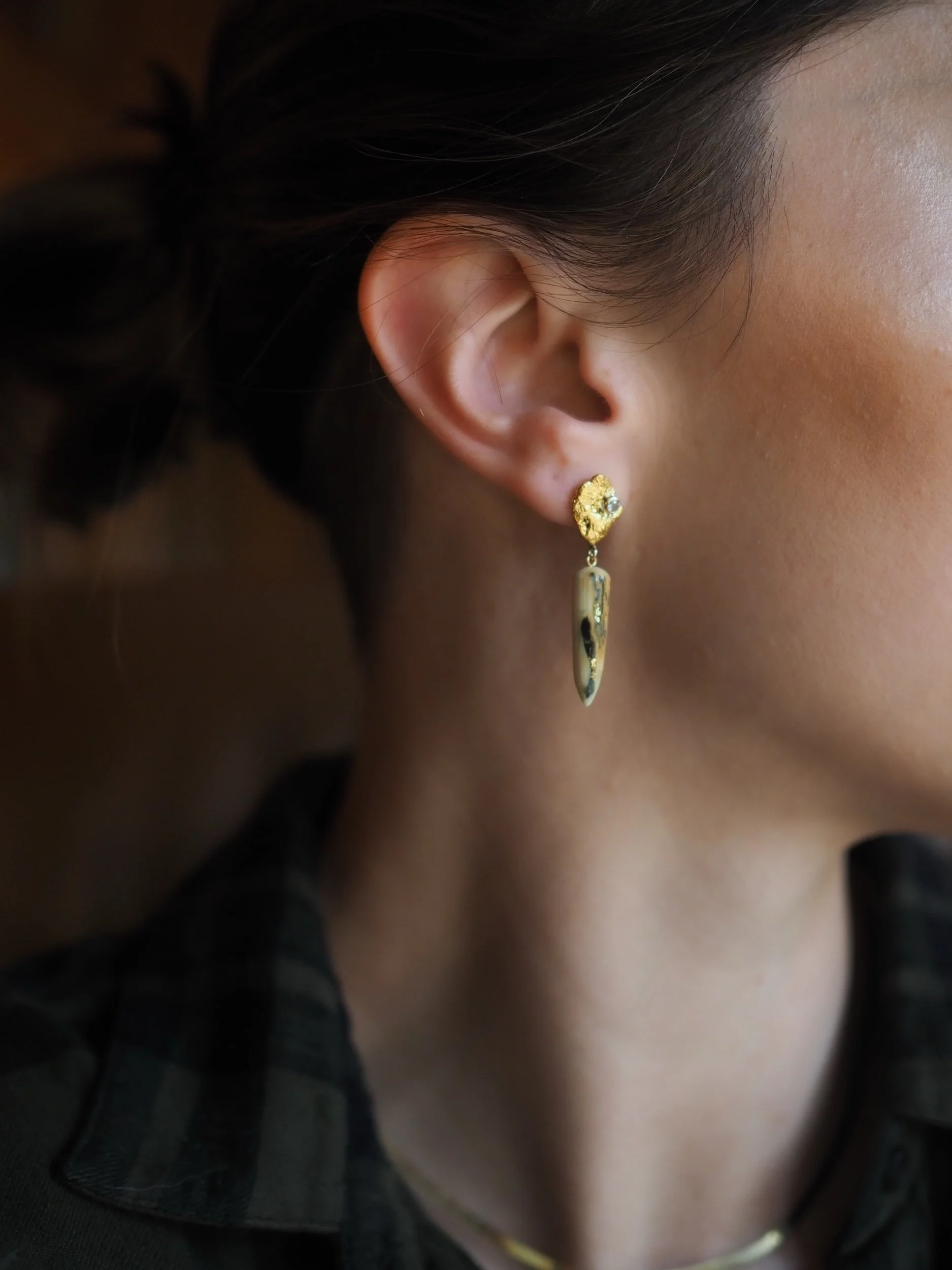 14k gold bezels with sterling silver backing, 14k gold ear posts, accents and ear backs