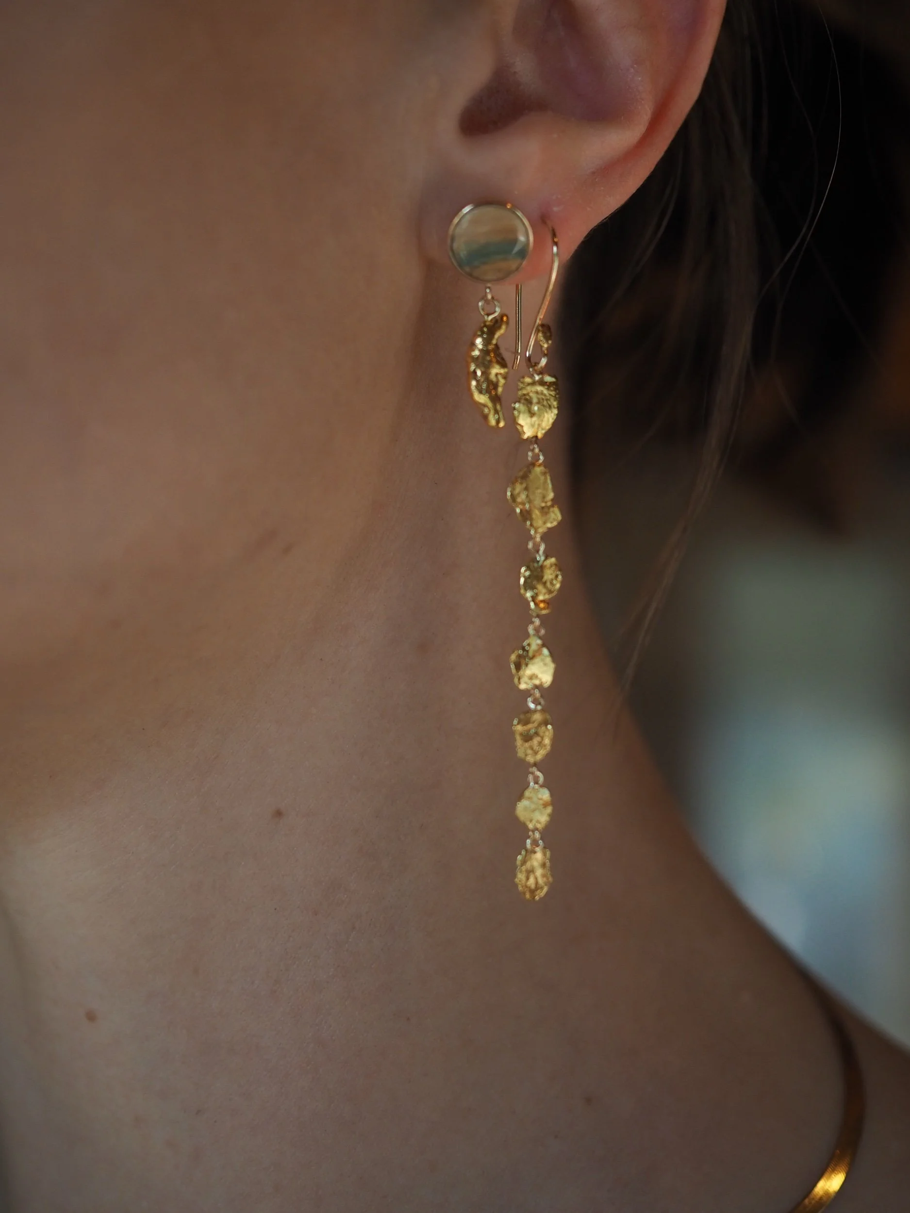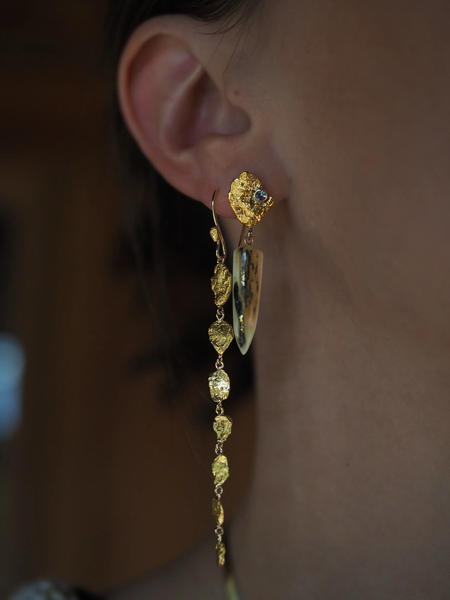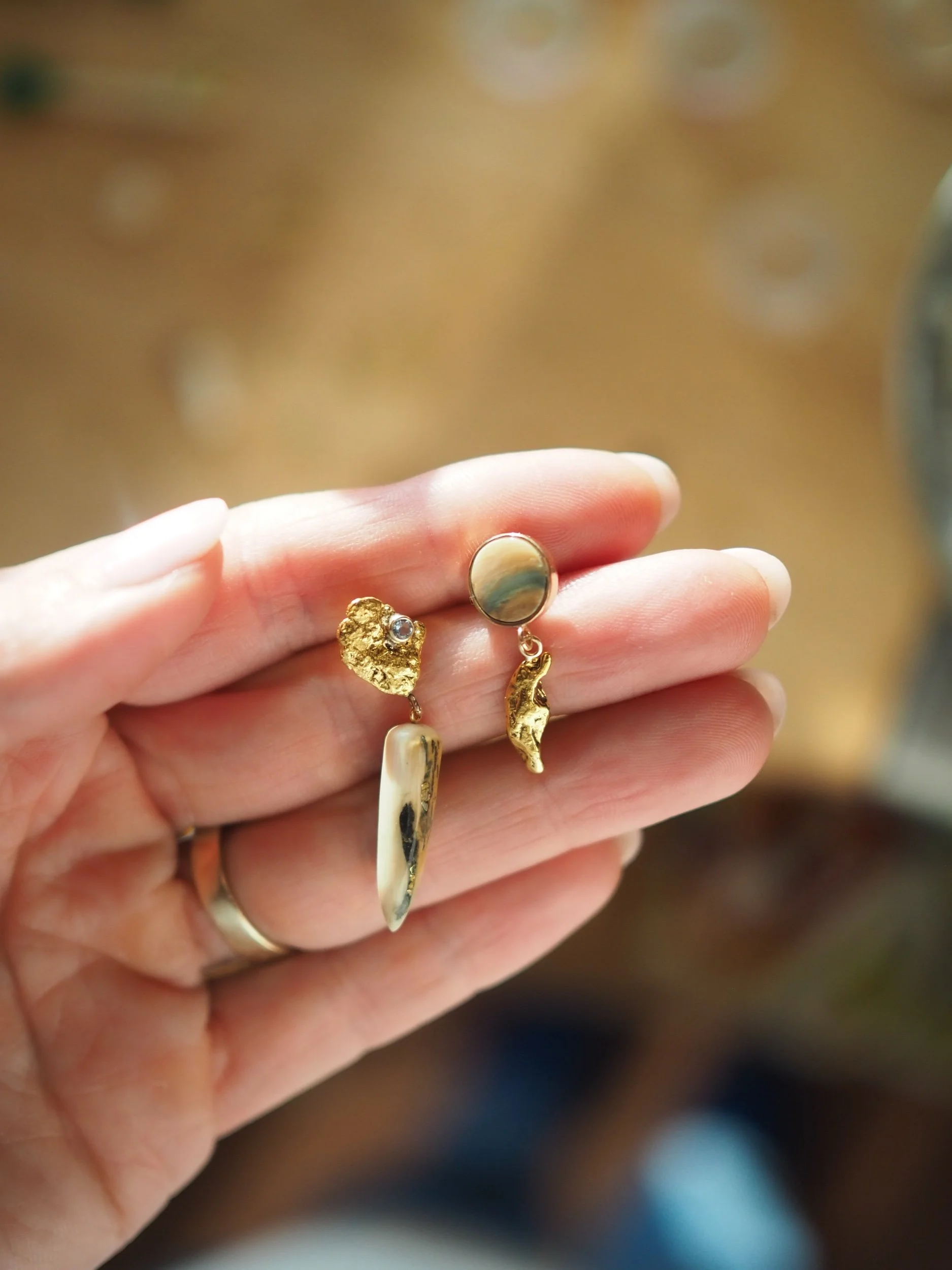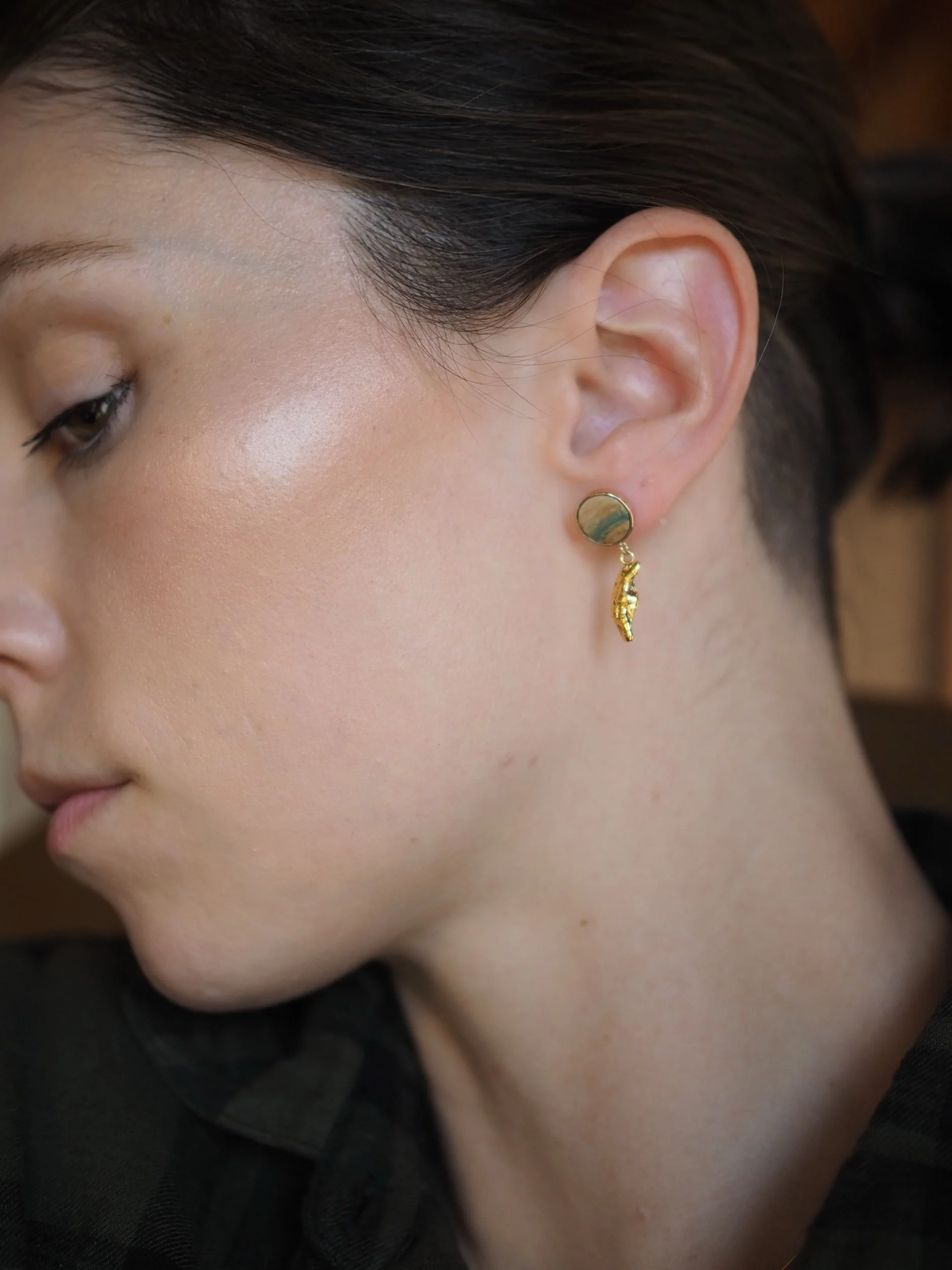 14k gold bezels with sterling silver backing, 14k gold ear posts, accents and ear backs