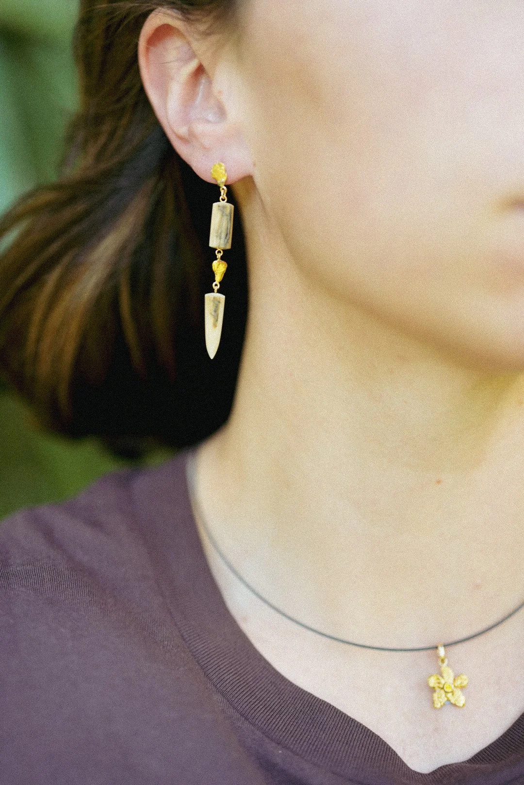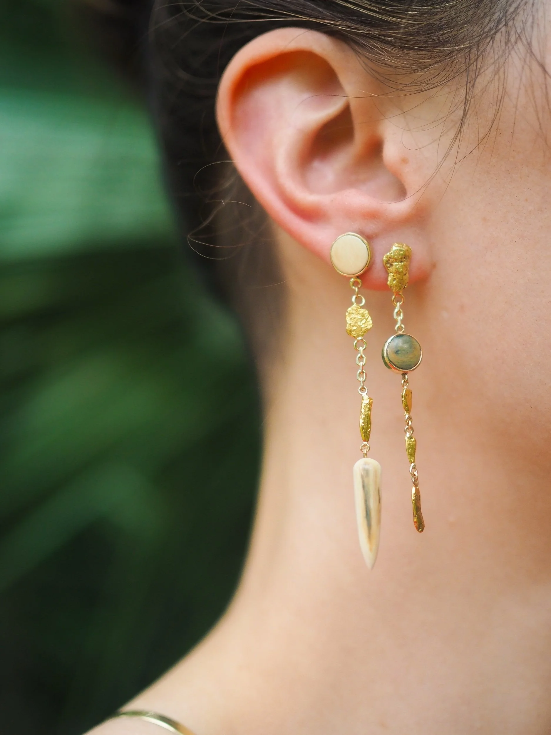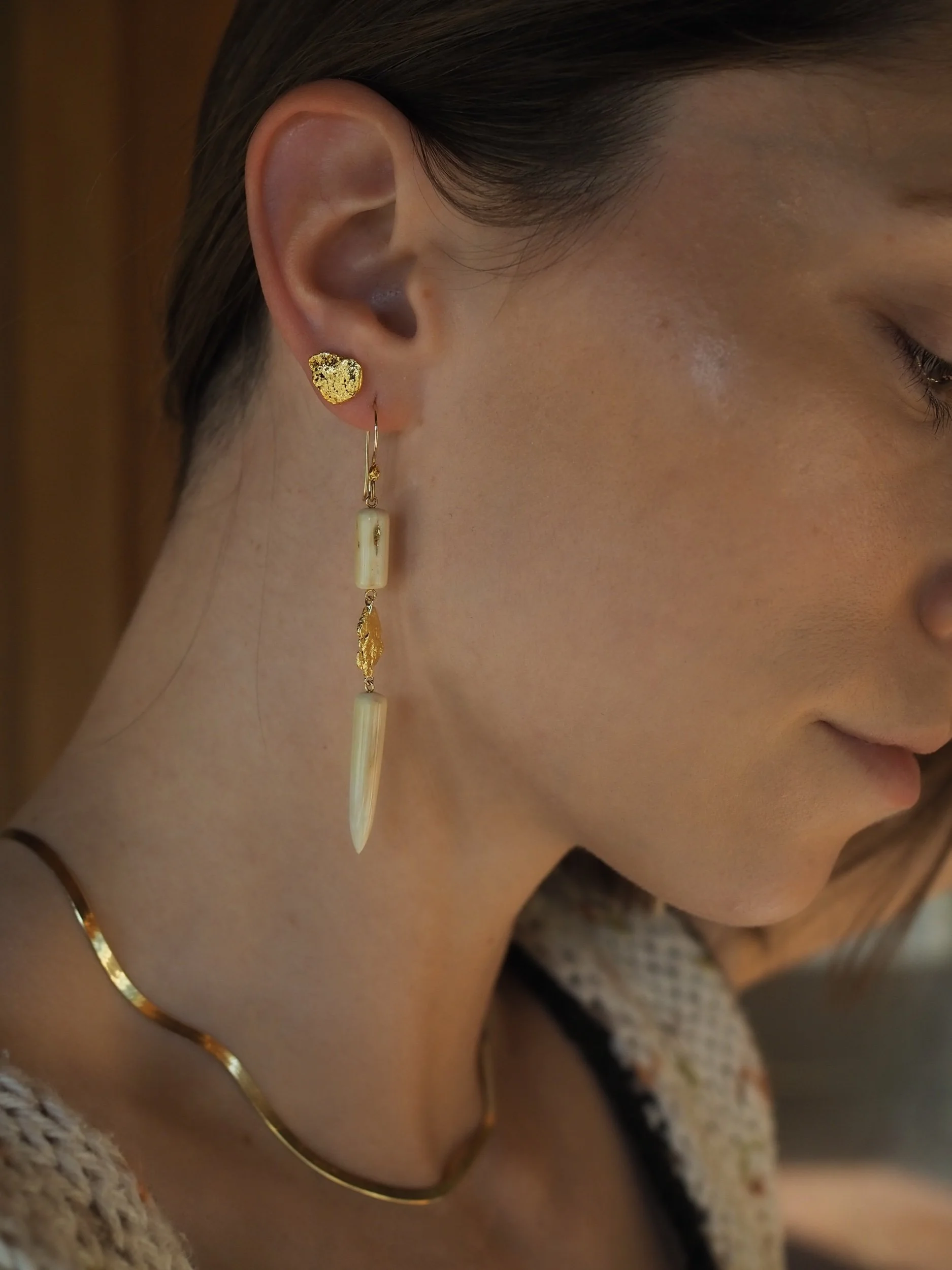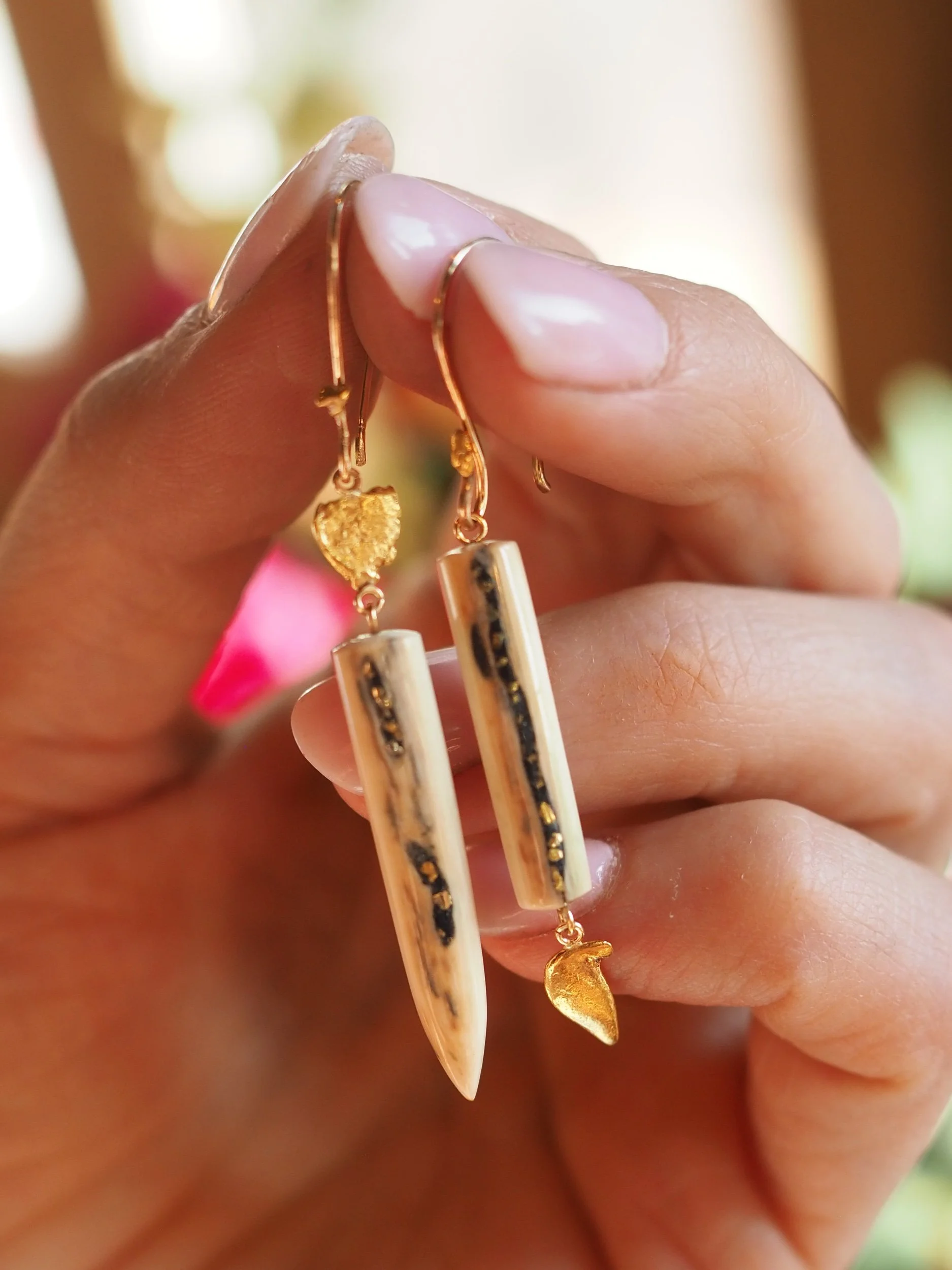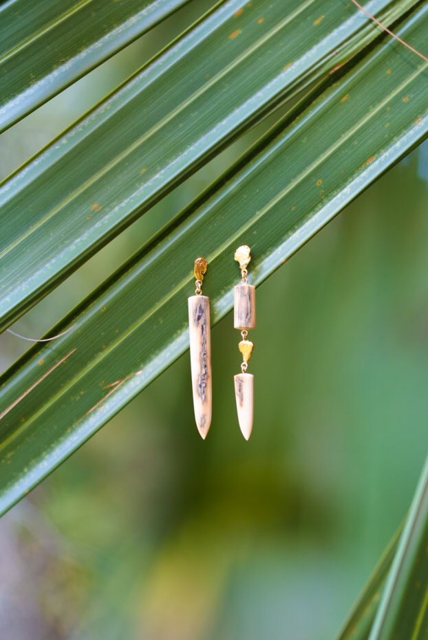 Fashioned from woolly mammoth ivory and natural gold nuggets that have waited 40,000 years to hangout together. Ready to walk the Earth and be brought back to life with you.