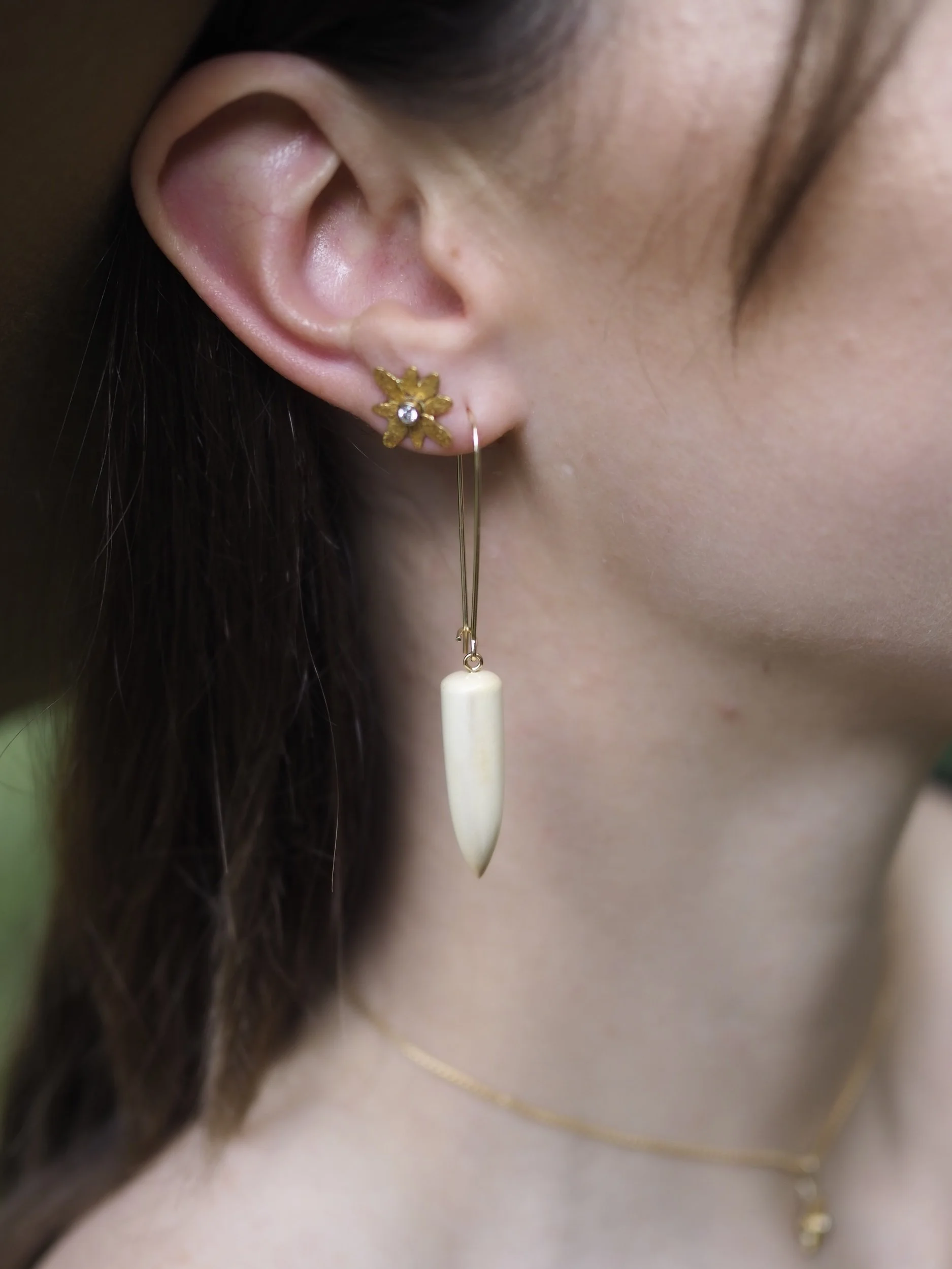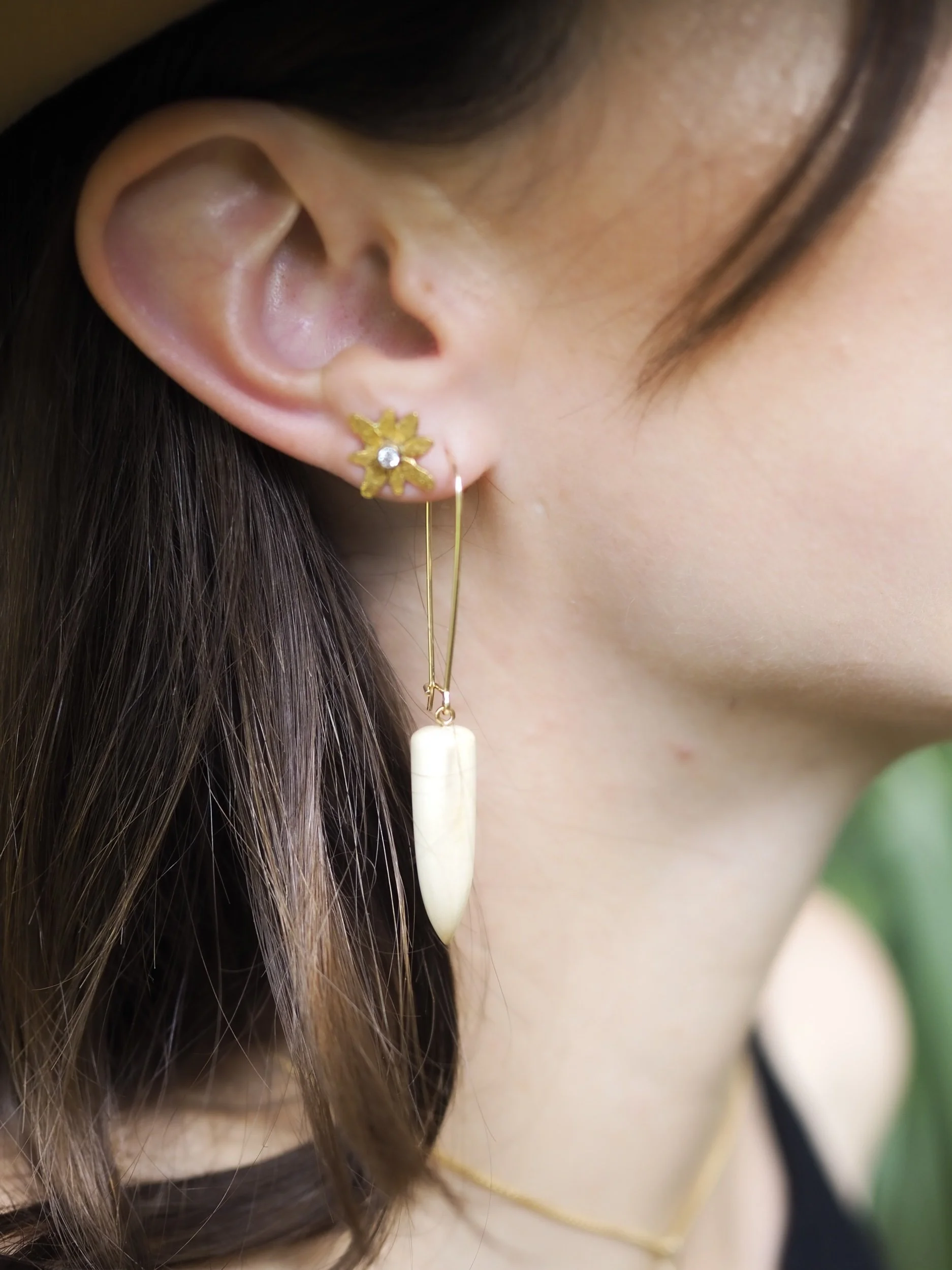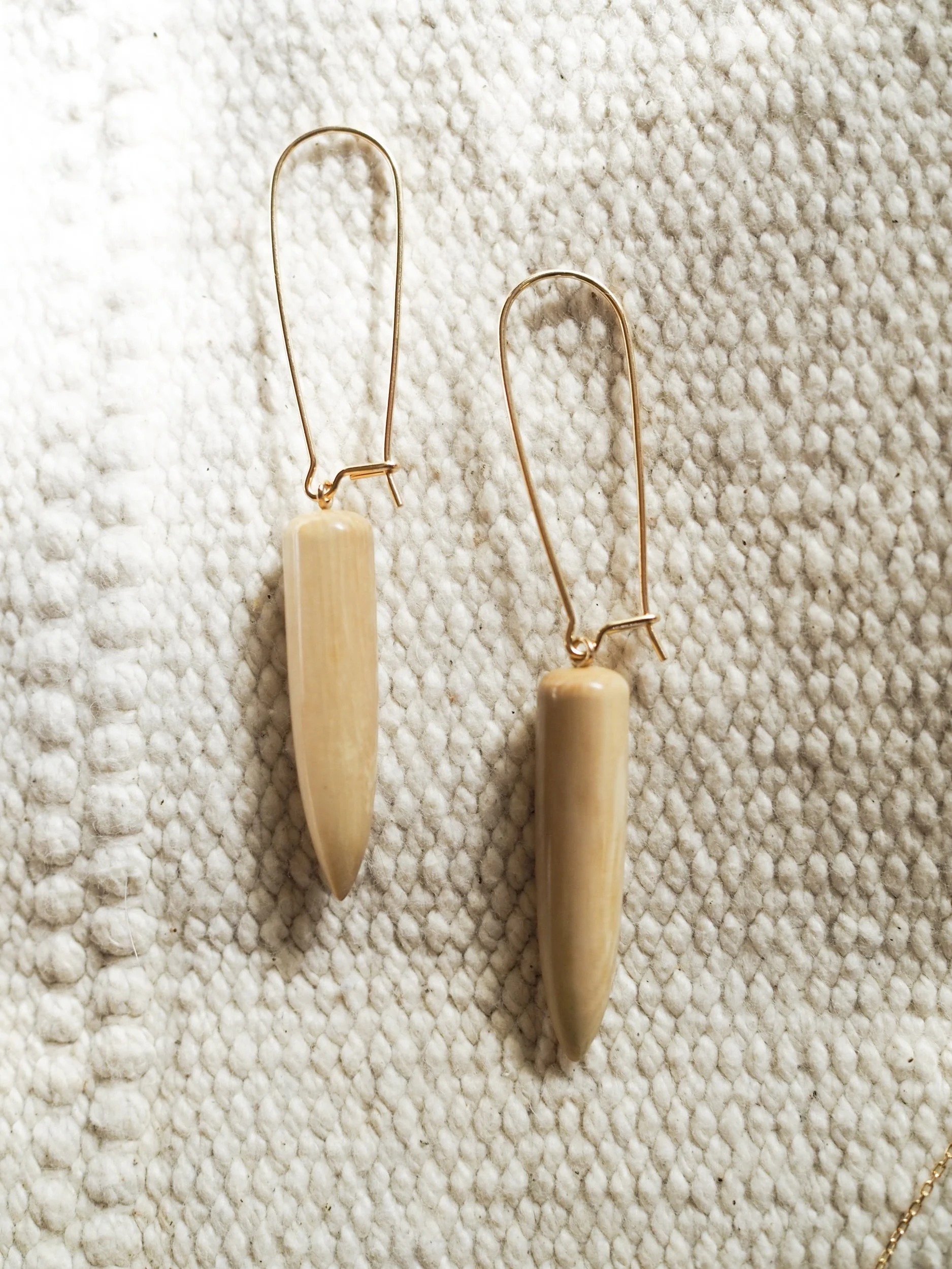 A simple yet epoch statement. Ancient woolly mammoth tusk drips down from gold fill ear wires, thousands of years in the making.